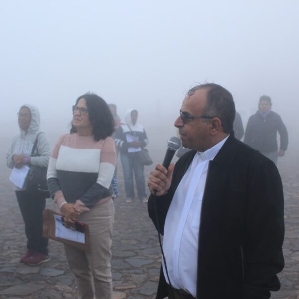 Os peregrinos foram acolhidos pelo padre Wagner Calegário, reitor do Santuário, e depois seguiram em oração, com o padre Ednei Almeida Costa, assessor eclesiástico do regional da Liturgia, até a Basílica das Romarias.