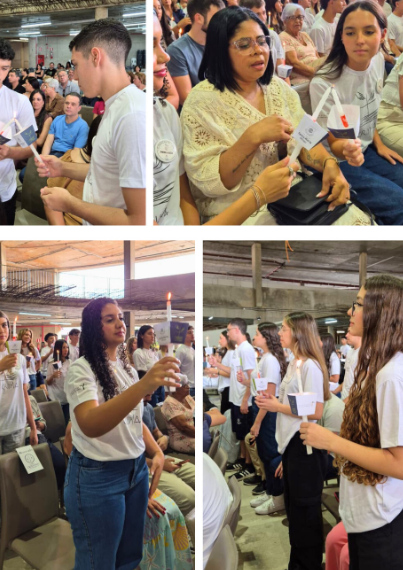Acompanhados por familiares, os crismandos concluíram um importante ciclo de fé e amadurecimento espiritual, após um ano de preparação nas unidades do Colégio Santa Maria Minas.