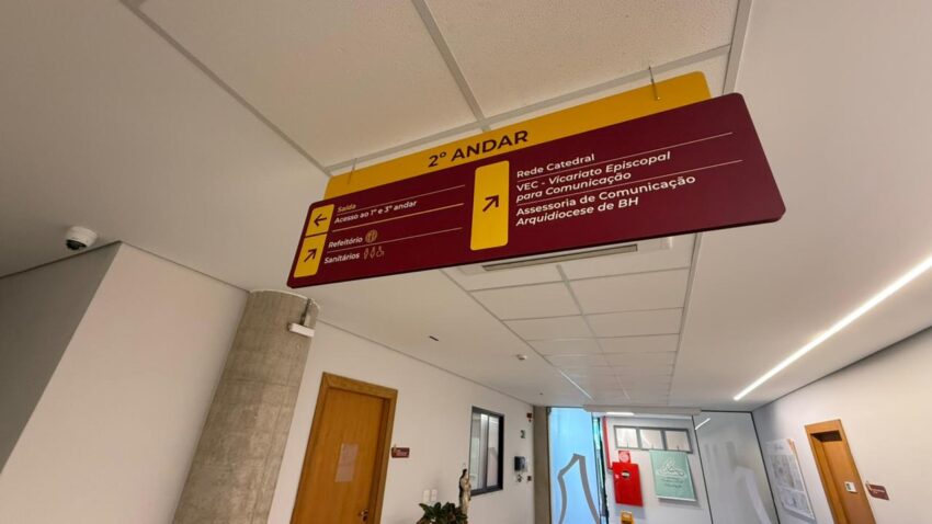 O espaço interno do ambiente administrativo da Catedral Cristo Rei traz ainda acolhida, modernidade e informação para quem trabalha ou vem conhecer os ambientes. Os investimentos no conjunto da sinalização visual e da personalização dos espaços são outras novidades que vêm sendo implementadas desde o último ano.