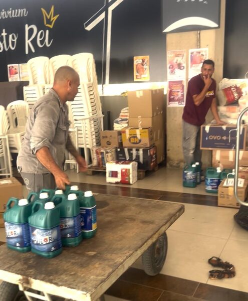 Você pode ajudar doando: água potável, alimentos não perecíveis, materiais de limpeza e produtos de higiene pessoal. No momento, o estoque de roupas e sapatos é suficiente.
