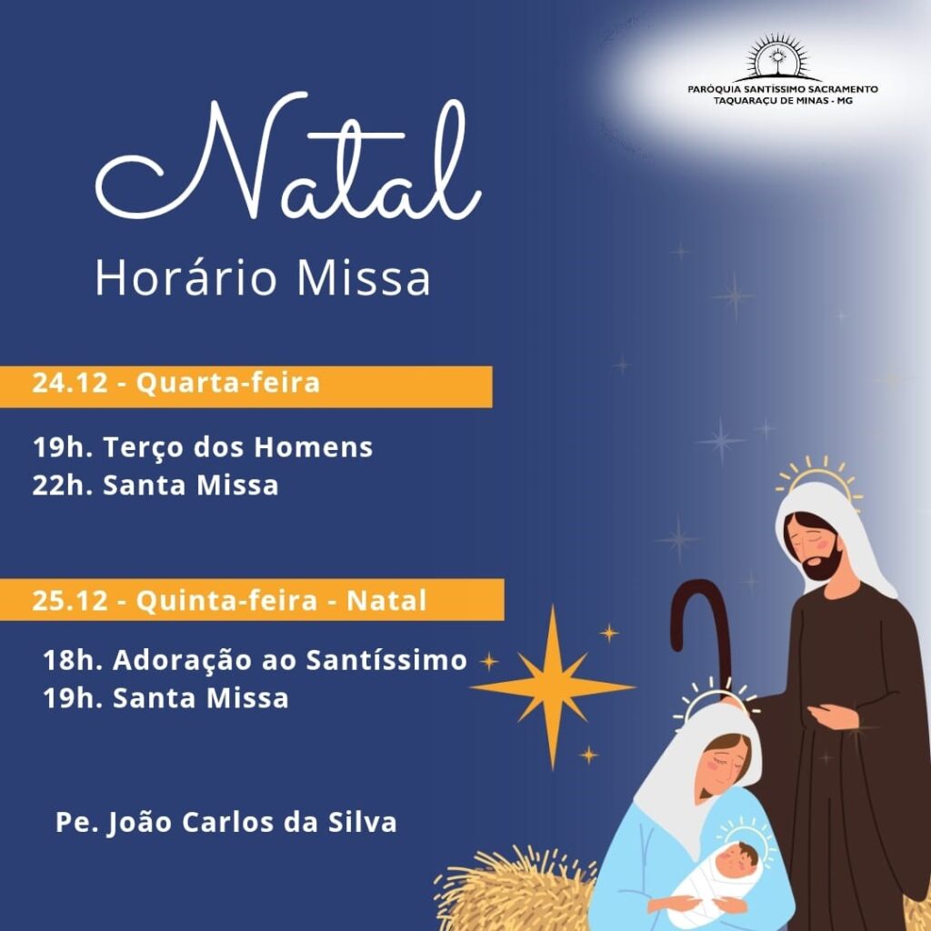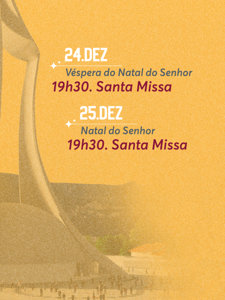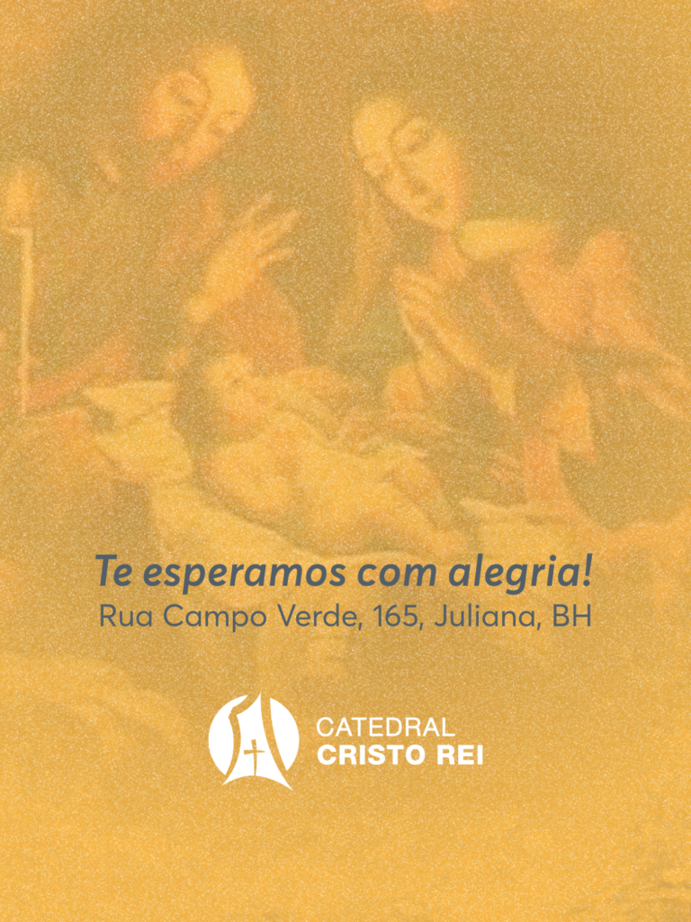 Na noite de Natal, 24 de dezembro, às 19h30, será celebrada a Missa da Véspera do Natal do Senhor, na Catedral Cristo Rei. Convide sua família e seus amigos e participe desse momento especial, em nossa Igreja-Mãe! No dia 25, quinta-feira, a Missa do Natal do Senhor será celebrada também, às 19h30.