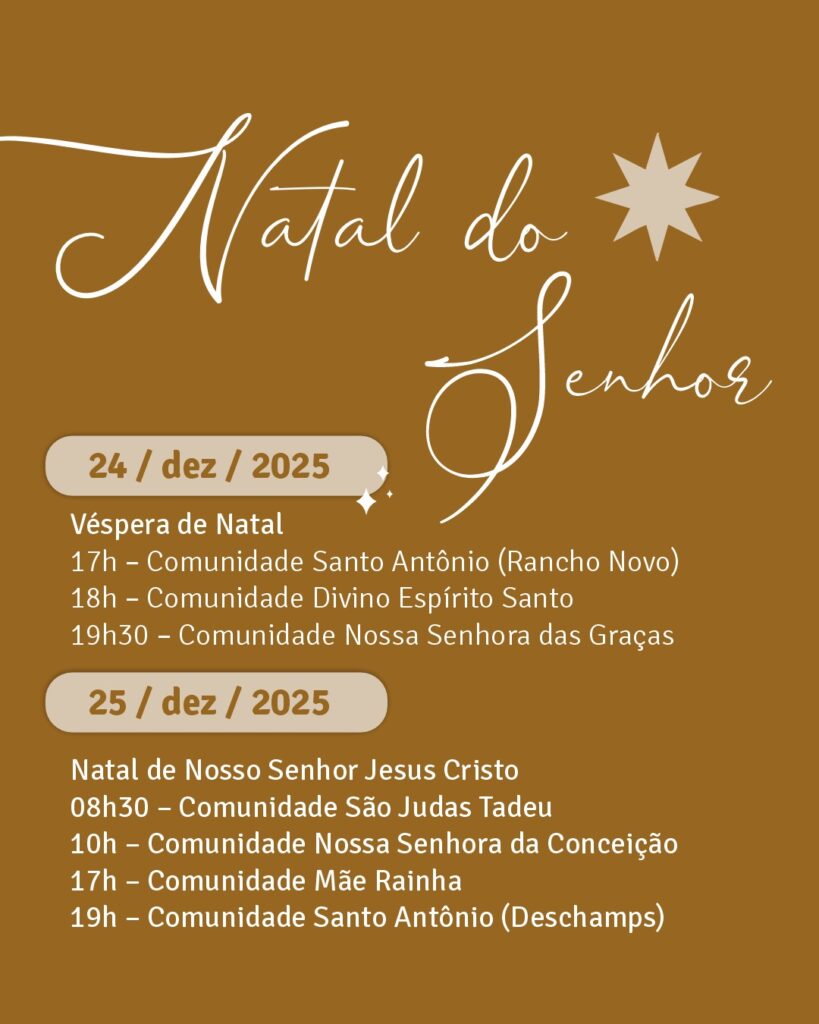 | DIA 25/12/2025 (quinta-feira) | 17h30 | CAPELA DE N.S. DA CONCEIÇÃO – GUEDES |