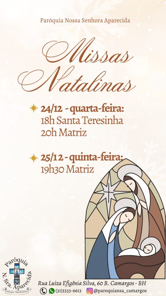 Dia 25 dez (Quinta): Missa –09:00– NOSSA SENHORA APARECIDA