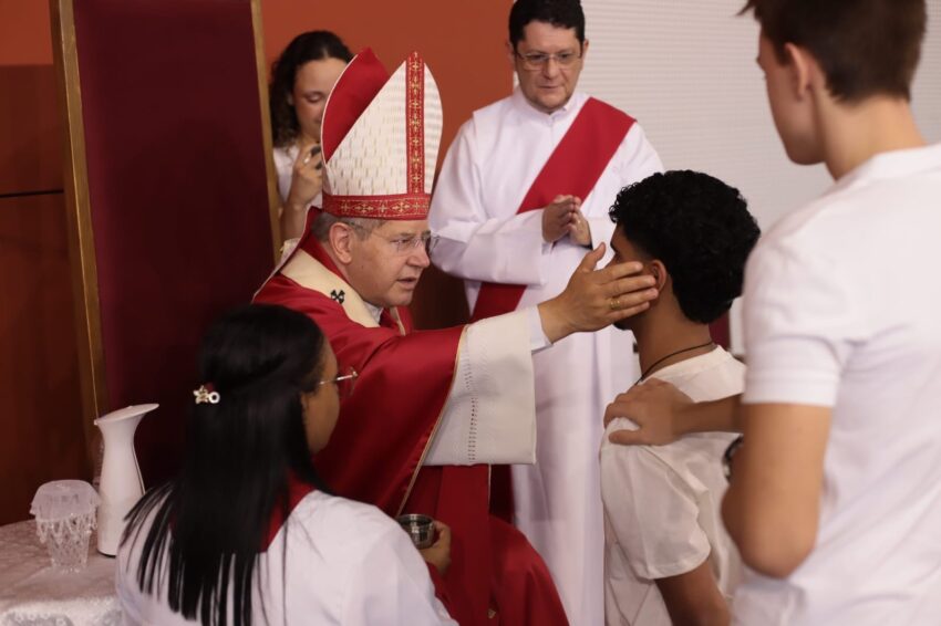 Na manhã deste sábado, 29 de novembro, o arcebispo dom Walmor ministrou o Sacramento da Crisma para 550 jovens da paróquia Bom Jesus do Vale, em Nova Lima. A Celebração Eucarística foi acolhida na Catedral Cristo Rei – nossa Igreja Mãe.