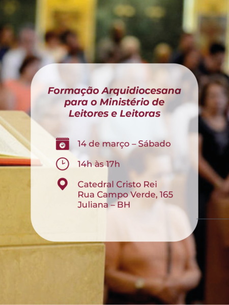 A Catedral Cristo Rei acolhe, com alegria, a Formação Arquidiocesana para o Ministério de Leitores e Leitoras, no dia 14 de março, sábado, das 14h às 17h.