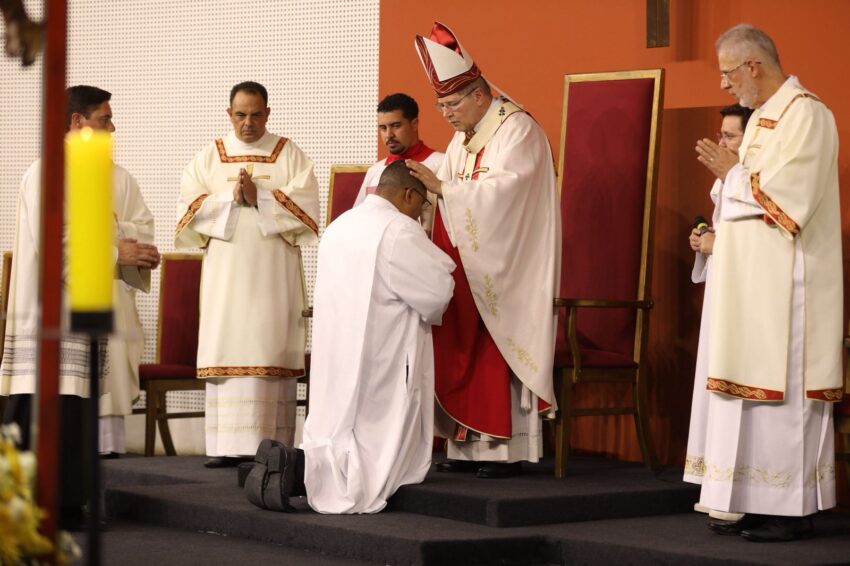 O arcebispo dom Walmor Oliveira de Azevedo celebrou Missa Solene com a ordenação diaconal de dez evangelizadores na Catedral Cristo Rei, nesta quarta-feira, dia 11 de fevereiro. A Celebração Eucarística reuniu esposas, familiares e amigos dos diáconos permanentes.